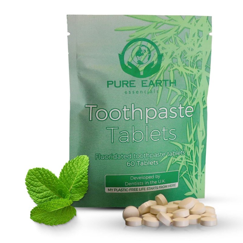 - [ Plastic Free Toothpaste Developed by Dentists ] - Reduce your footprint without sacrificing comfort. Zero waste toothpaste tabs were developed by PURE EARTH essentials Dentists in the UK to meet their patients increasing demand for eco-friendly toothpaste that's effective in removing stains. It comes packed in a 100% recyclable paper bag, and the resealable component of the pouch is made of biodegradable corn.