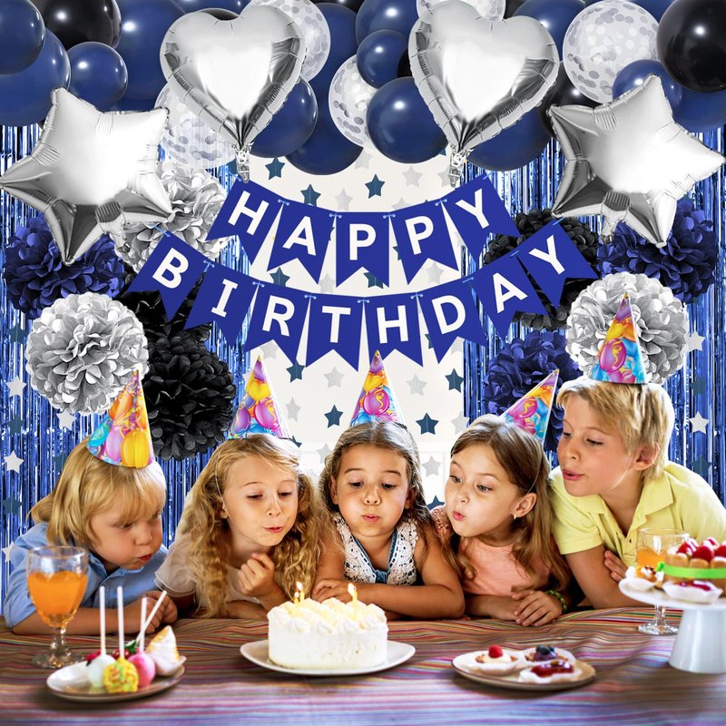 - Black and Navy Blue Birthday Party: It is a dream come true for party planners and hosts looking to create a magical and memorable celebration. With its enchanting design, quality materials, easy assembly and versatility, this decoration kit is worth recommending. Transform your event into a whimsical wonderland with ZERODECO – where every detail sparkles with charm and joy.