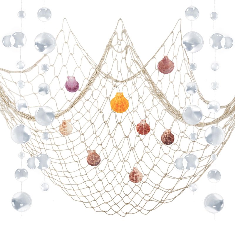 - 【Nautical Themed Style】 Natural fish net, bubble garlands and seashells are perfect for pirate party, wedding decor, baby shower, kids birthday party, under the sea party, beach theme party, hawaiian party, mermaid decor.