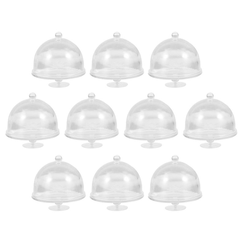 Zerodeko 10PCS Dollhouse Mini Cake Plate with Lid, Plastic Cupcake Stand Dome Cover, Clear Small Cake Display Stand for Dollhouse Kitchen Party Supplies Accessories 1 12 Scale