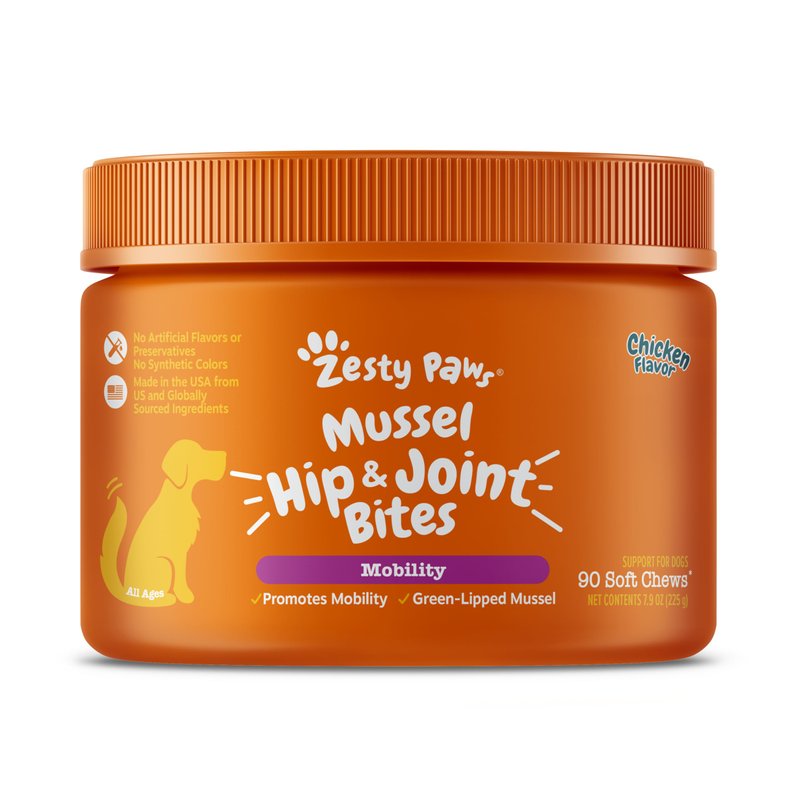 It's only natural that you'd want to support your pup's joint health. Mussel Mobility Bites from Zesty Paws feature 500mg of cold-processed Green-Lipped Mussel sourced exclusively from New Zealand. As a naturally occurring source of glycosaminoglycans and mucopolysaccharides, these soft chews help maintain healthy joint function to keep the pep in your dog's step.
