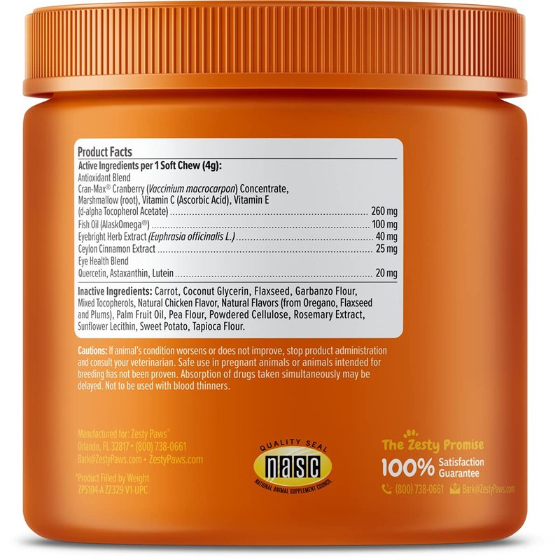 Zesty Paws Tear Stain Support Soft Chews for Dogs - for Eye Moisture + Vision & Immune Support - Functional Supplements with Fish Oil, Lutein, Cranberry & Vitamin C - Chicken Flavor - 90 ct