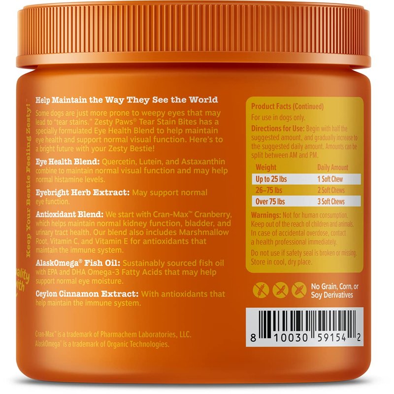 - From Tears to Cheers! - Zesty Paws Tear Stain Bites are FUNctional supplements that are formulated to support normal eye moisture, plus vision and immune system function for your canine companion.