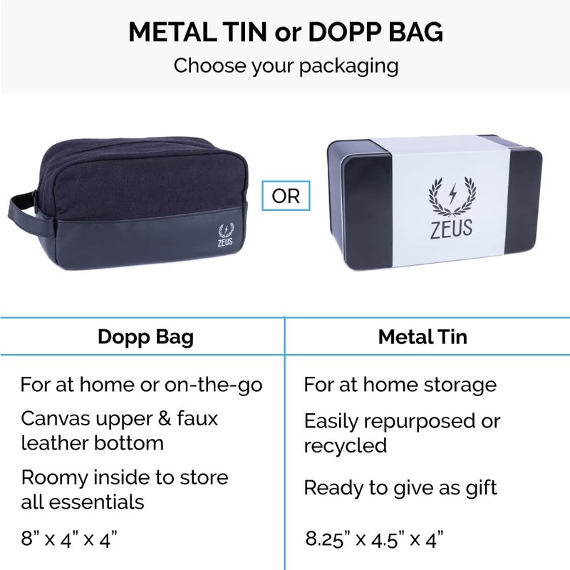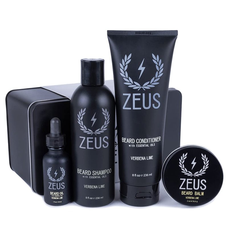 - BEARD CARE GIFT SET: Our Zeus Everyday Beard Kit includes the following: (1) Zeus Beard Shampoo, (1) Zeus Beard Conditioner, (1) Zeus Beard Oil, (1) Zeus Beard Balm, and (1) Zeus Tin to hold it all together. MADE IN USA | CRUELTY FREE | PARABEN & SULFATE FREE