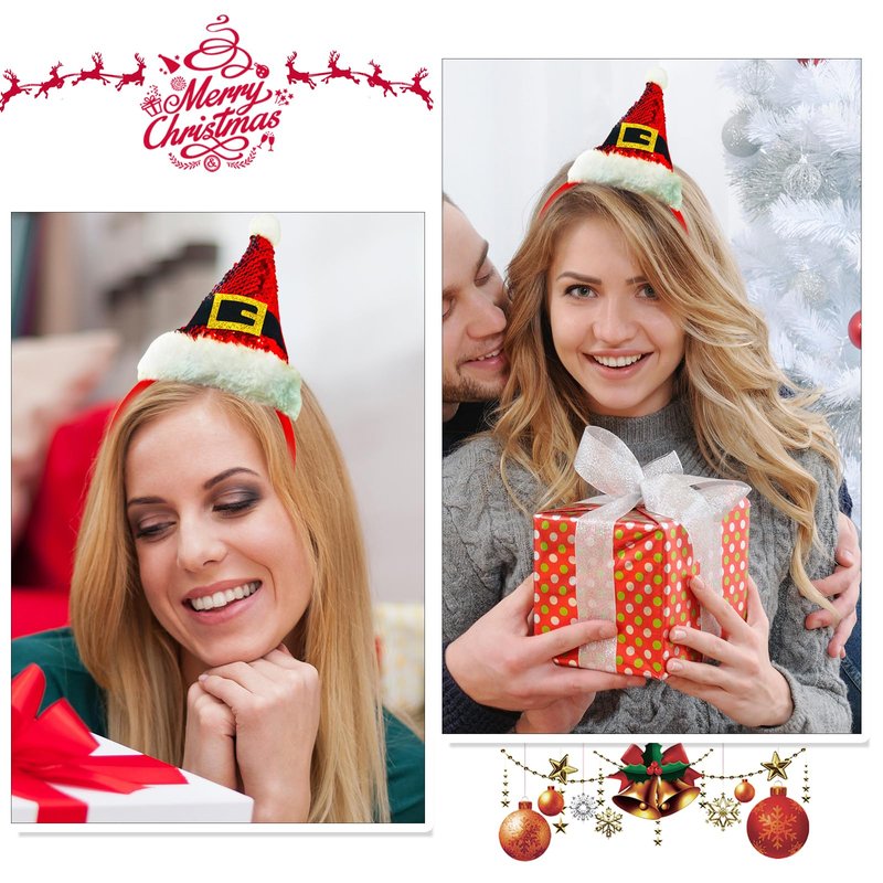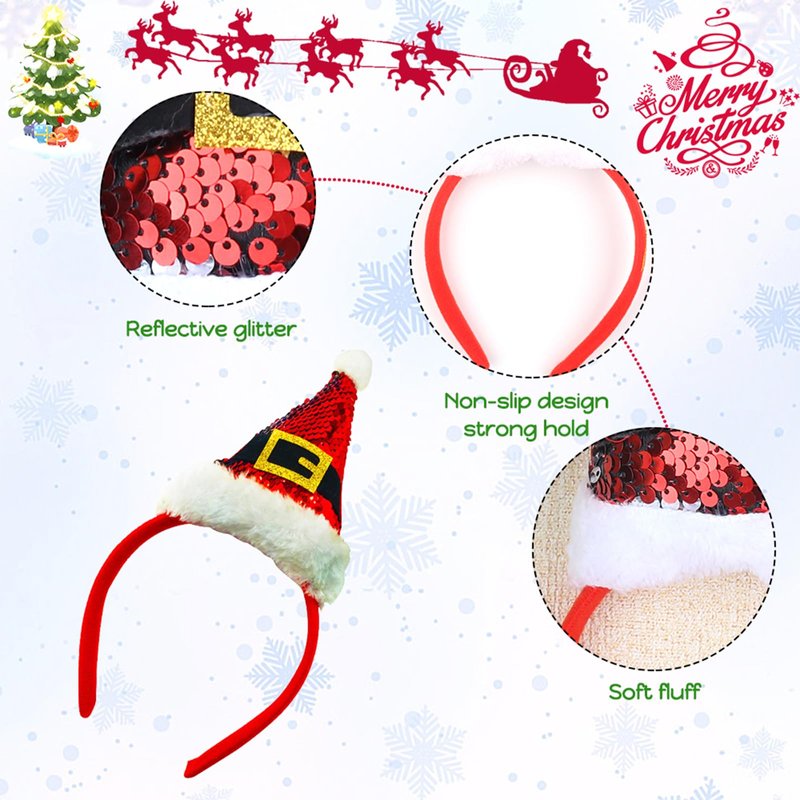 - Christmas Headband: Featuring a cute red sequined hat on top, this headband adds a whimsical and cheerful element to any Christmas outfit, ensuring you stand out at holiday events.