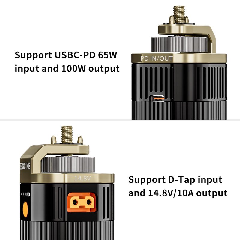 The ZGCINE ZG-H90 Battery Grip is a high-performance accessory designed for video light users. Equipped with USB-C PD Input/Output, it enables convenient charging of various devices while also powering the grip itself. The charging indicator light prompts keep you informed about the battery level, ensuring uninterrupted shooting sessions. With its D-Tap 14.8V Output, the battery grip provides a reliable power source for your video light, guaranteeing consistent performance. The universal light stand connector ensures easy attachment to any standard light stand, offering stability and flexibility during outdoor shoots. Specially designed for handheld outdoor fill light, this battery grip caters to the needs of professional videographers, delivering enhanced portability and ease of use.