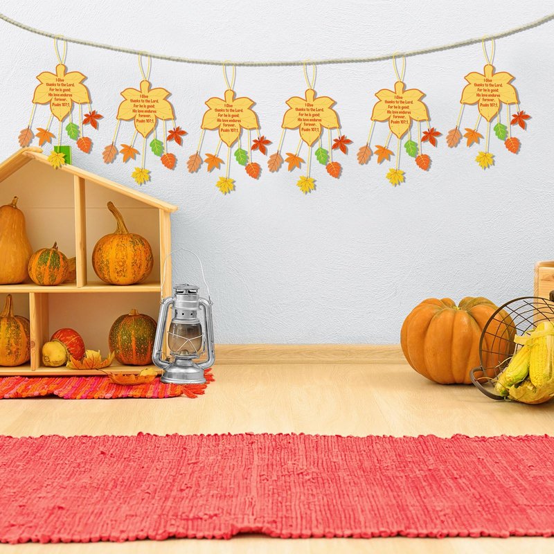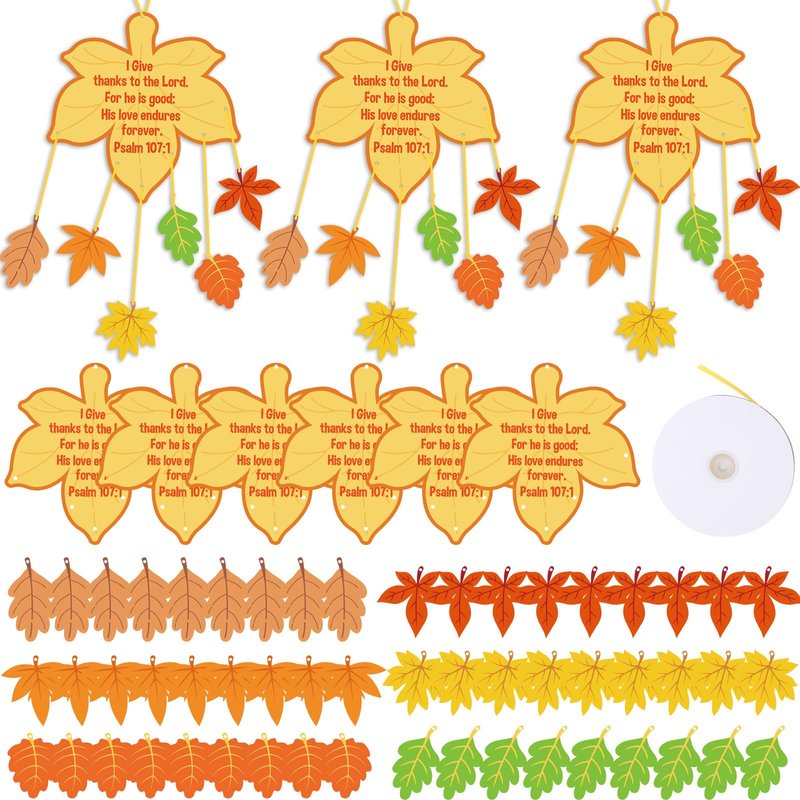 - Ample Quantities to Use and Share: the package you will receive comes with 30 sets of thankful leaves mobile craft kits, each set includes 1 piece of large leaf printed Psalm 107: 1 Bible verse, 6 pieces of small colorful leaves, and 7 pieces of yellow strings; The abundant quantity and fall design can meet your use and replacement needs