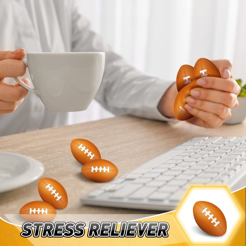 Features: Thoughtful gift: These stress balls are thoughtful gifts for your friends, family, colleagues and so on, which can help them to release stress, relax their mind and bring them a pleasant mood, improving work efficiency. Wonderful party decoration: Designed with small size and comfortable material, the mini football is a wonderful decoration for football party Specifications: Material: foam Color: brown Size: 1.46 x 0.98 inches/ 3.7 x 2.5 cm Package includes: 40 x Mini foam footballs Notes: Manual measurement, please allow slight errors on size. The color may exist slight difference due to different screen displays. Suitable for people over 12 years old.