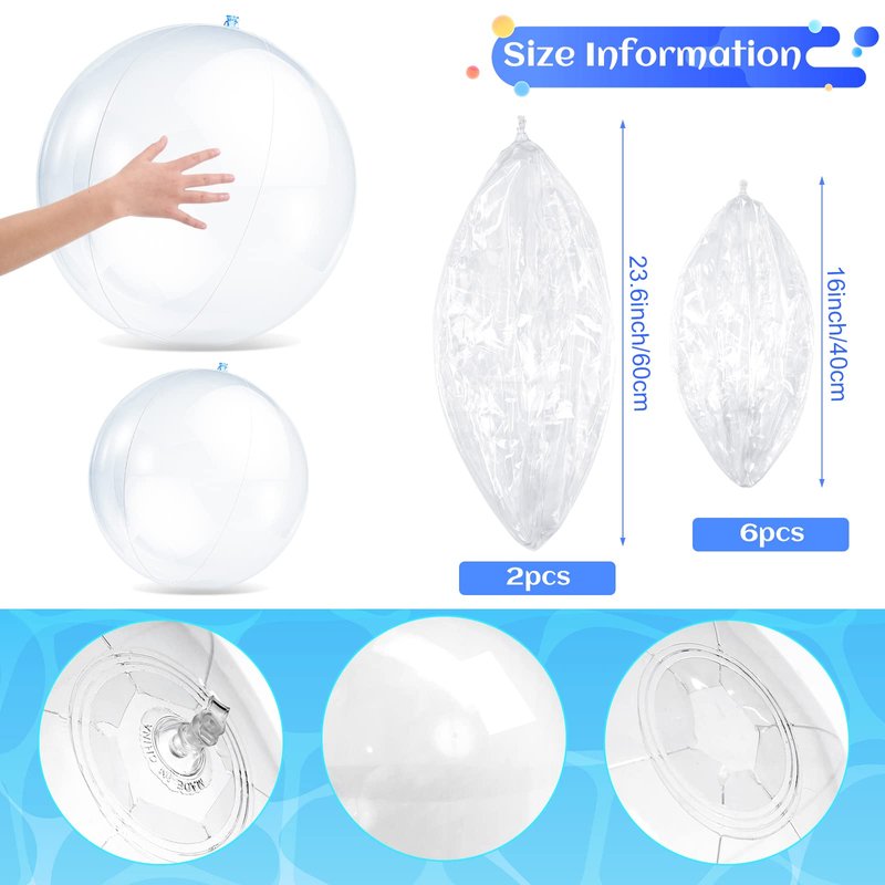 Zhanmai 8 Pieces Inflatable Clear Beach Ball Inflatable Clear Balloons Transparent Swimming Pool Party Ball for Summer Beach, Pool and Party Favor, 16 Inches, 24 Inches