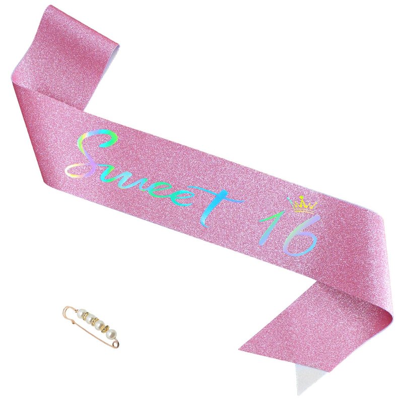- Birthday Gift Sash: One PInk sash with Silver Text + one safety pin,celebrate your birthday in style with this 'Sweet 16' sash