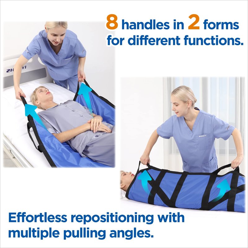 - ✅ TURNING, REPOSITIONING & LIFTING MADE EASY! Our double-sided nylon fabric patient sheet is equipped with 8 heavy-duty, reinforced handles that will help you transfer, reposition, turn or lift any patient with relative ease.