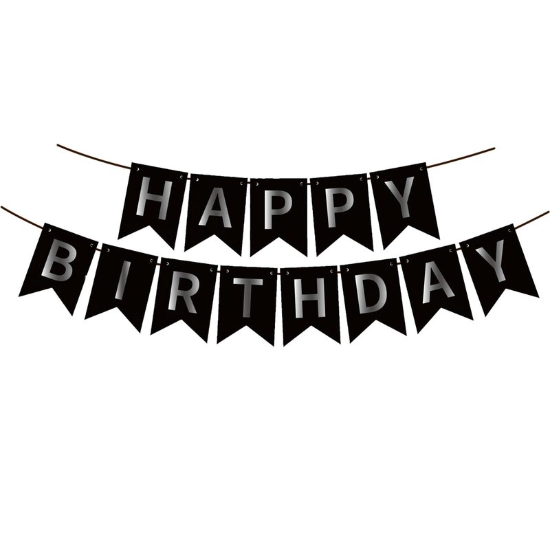 ZHENGYE Black Happy Birthday Banner Birthday Theme Birthday Party for Kids Girls Birthday Party Decorations Supplies