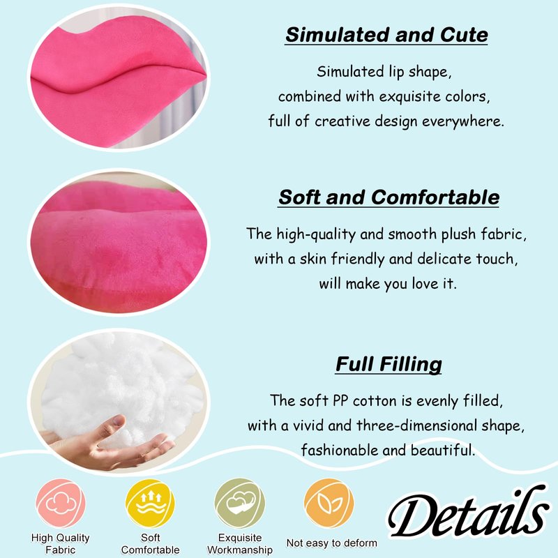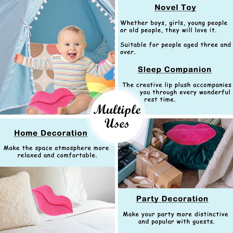 - MORE USES – Fashionable lip plush can be used as entertainment toys, sleep partners, home or party decorations, small pillows or cushions for rest, and has a wide range of uses, bringing you more joy and comfortable experience. You can place it in various favorite places according to your different needs at different times, such as on the bed, sofa, chair, car, and so on.