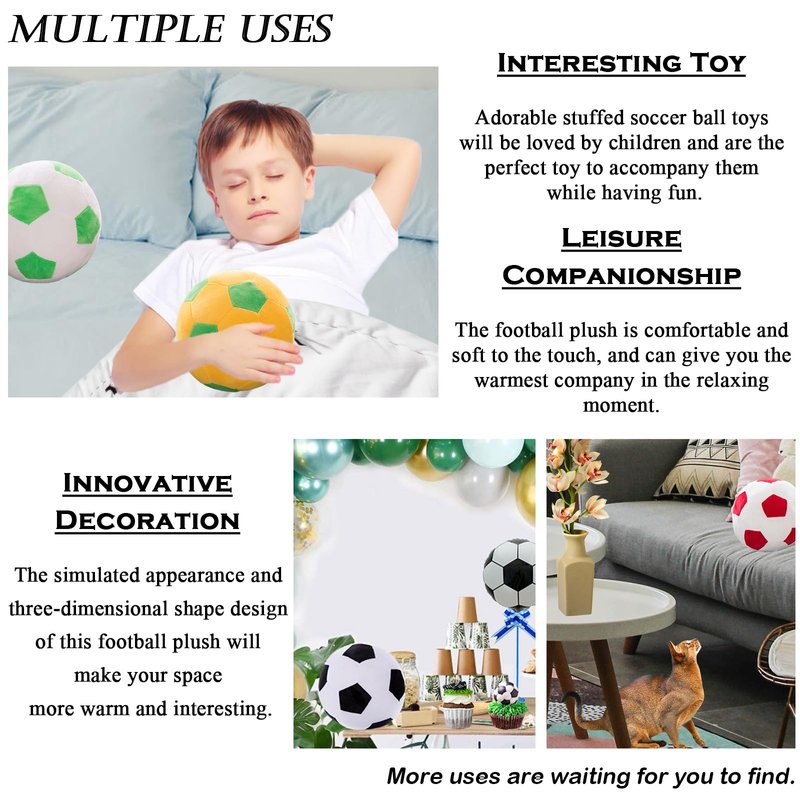 - 【Leave Happy Memories】: The stuffed soccer ball plush toy is an ideal gift for family, friends, kids. You can use it to create an unexpected surprise for your cherished people on Christmas, Valentine's Day, birthdays, theme parties and other festivals or occasions, leaving happy memories that belong to you together.