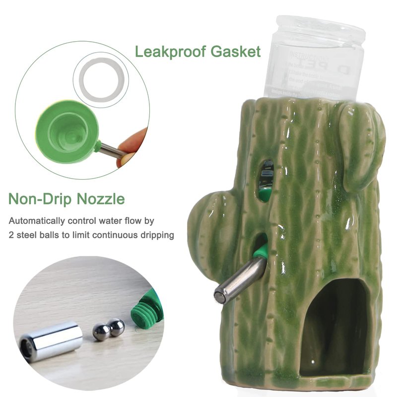 - 【Great Decor for Glass Tank】Our hamster water bottle stand enable you to put the water bottle into any hamster cage you want, especially in a glass tank,terrarium,or your DIY hamster cage. Cute cactus shape stand decorates a vividly desert play-place for your hamster.