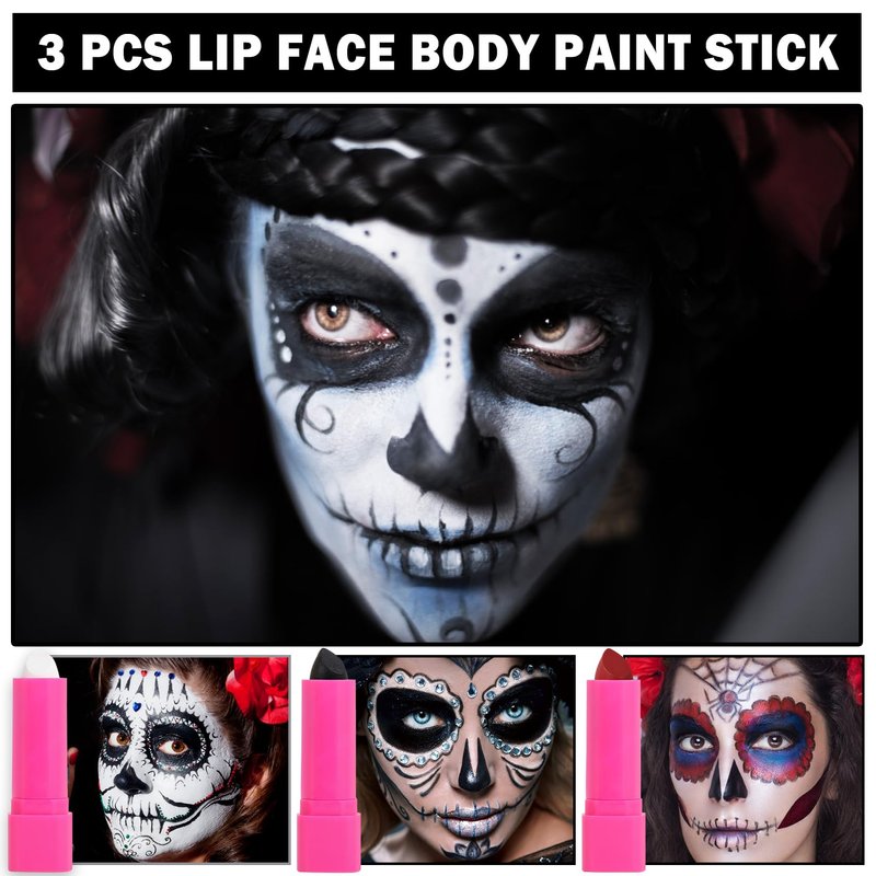 ZHISHUDL 3PCS White Black Red Body Face Paint Eye Black Stick Professional Football Baseball Softball Matte Lipstick Face Painting Kit for Halloween Costume Clown Makeup