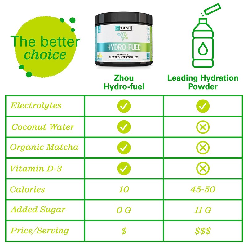 Zhou Nutrition Hydro Fuel, Sugar Free Electrolyte Powder, Replenish Nutrients, Restore Hydration, Natural Mineral Complex with Coconut Water Concentrate, Vegan, Gluten Free, Lemon Lime, 30 servings