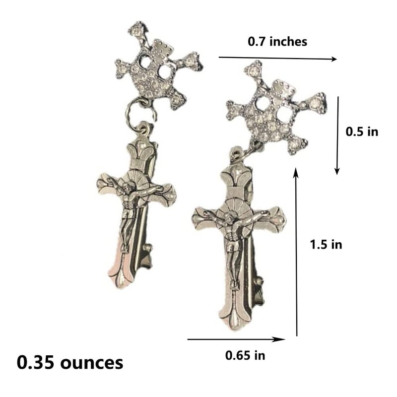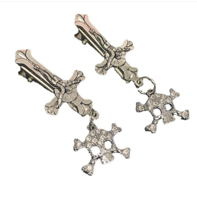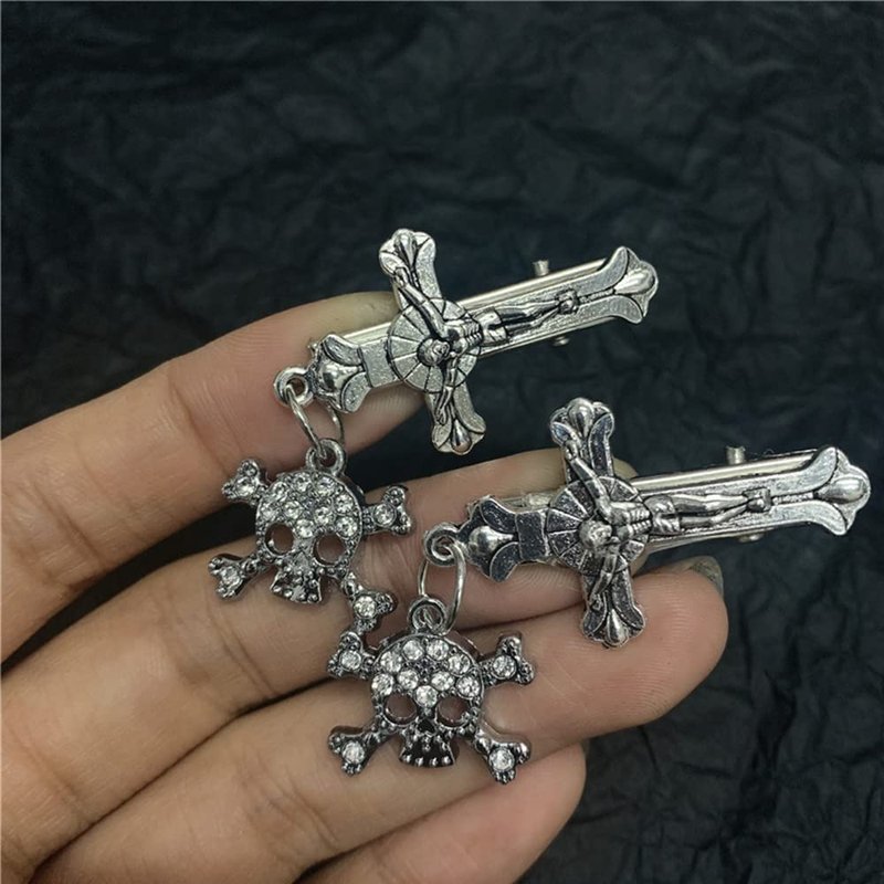 ZHOUMEIWENSP 2PCS Metal Skull Hair Clips Retro Cross Hairpin with Rhinestone Tassel Punk Duckbill Clips Novelty Hair Style Making (Cross skeleton)