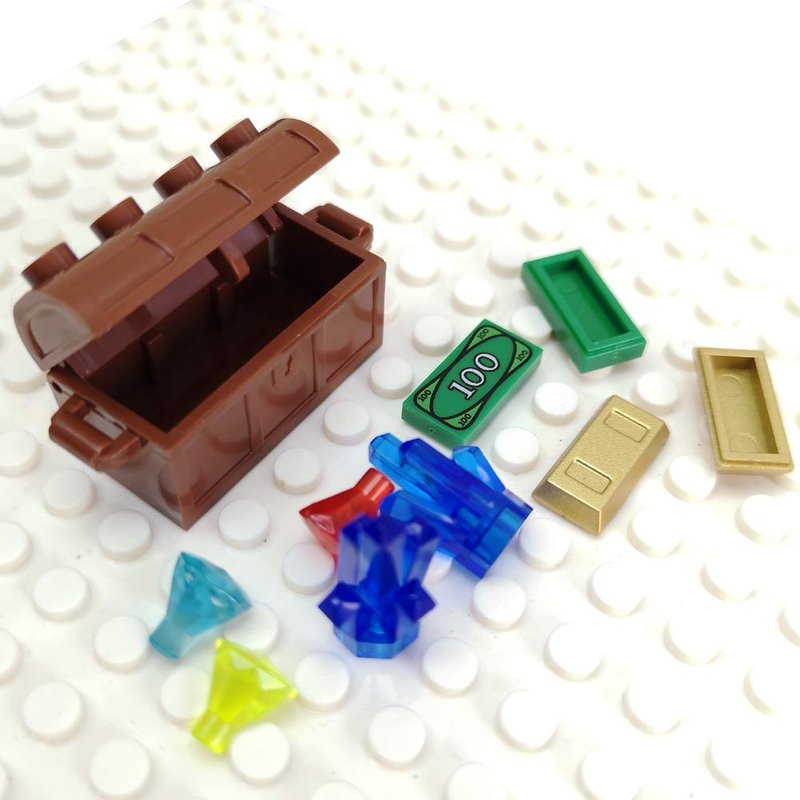 - 1.This listing include 50 pieces Diamonds,10 pieces $100 bills,10 pieces Ores, 30 pieces Gold Bars, 4 pieces Treasure Chest , as picture show.