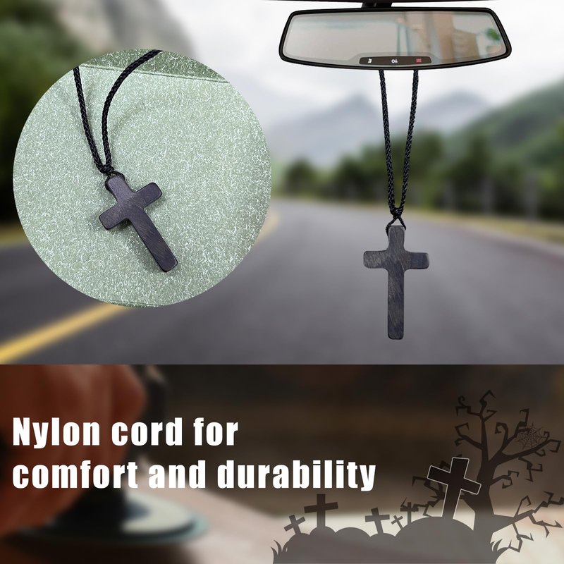 Ziciner Natural Wooden Cross Pendant Necklaces, Adjustable Handcrafted Wooden Car Rearview Mirror Pendant, Universal Vehicle Rear View Mirror Decoration for Men and Women (Standard, Black)