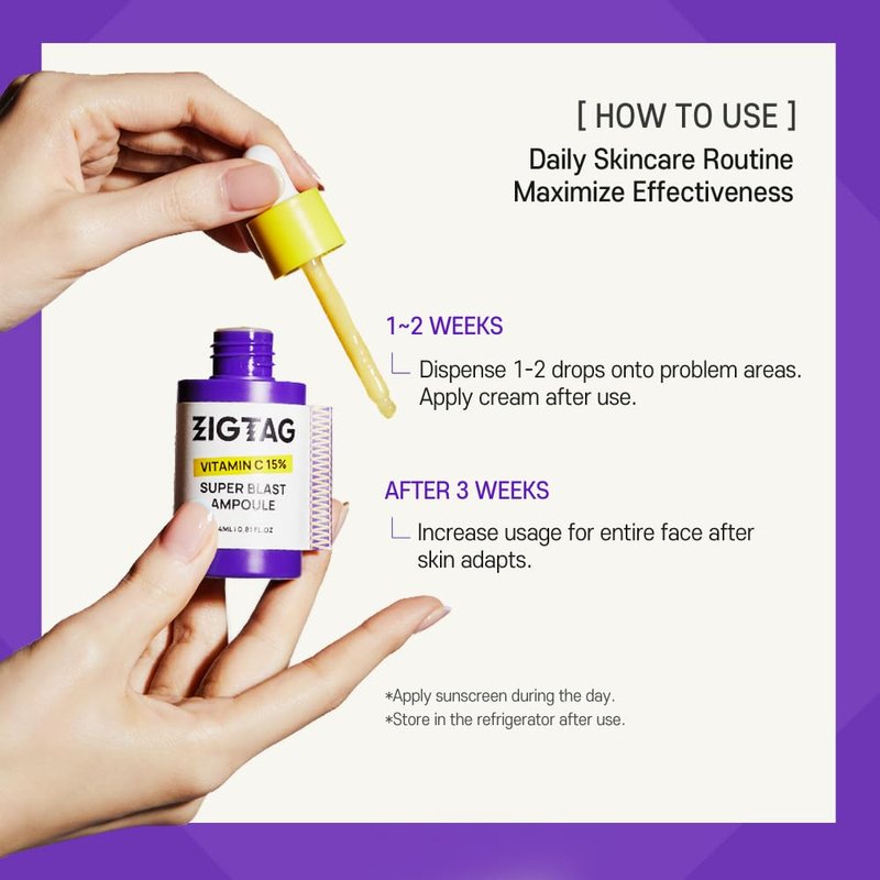 ZIGTAG Vitamin C 15% Super Blast Ampoule - Korean Skin Brightening Serum, Glutathione & Ferulic Acid for Anti-Aging, Reduce Wrinkles, Uneven Skin Tone, Radiant & Youthful Skin, 24ml/0.81Oz