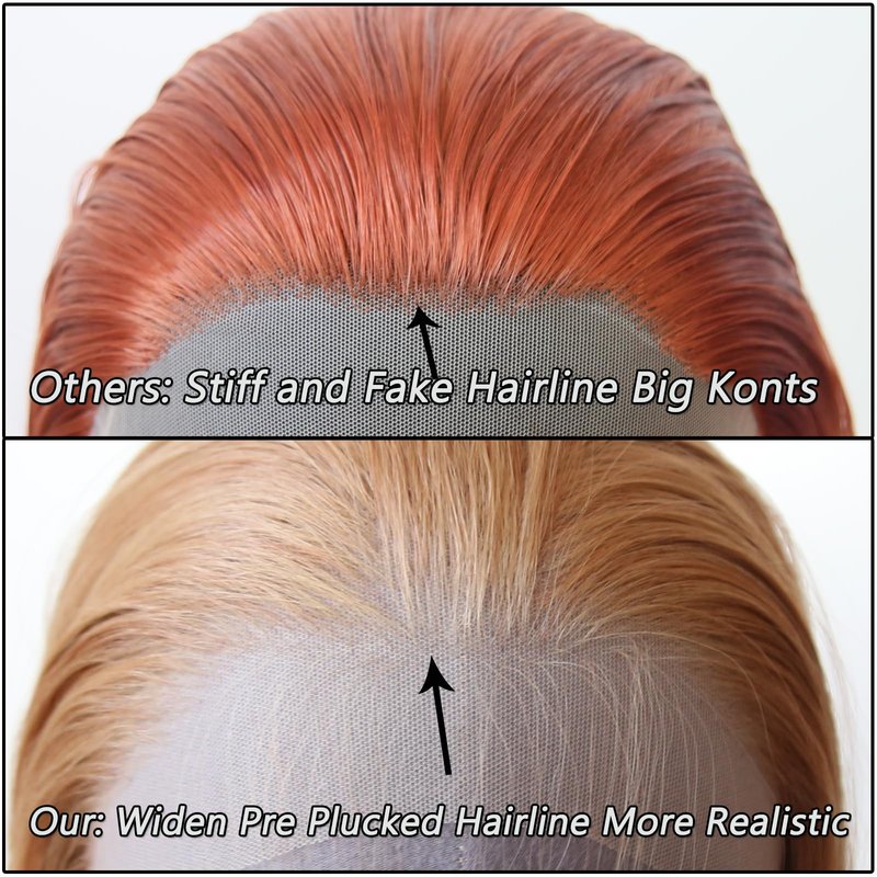 - Cap Size:22.5inch with combs and adjustable straps to help you fix the Strawberry Blonde lace front synthetic wig pre plucked.