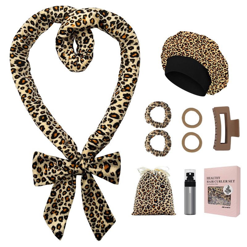 ZILAMPU Hair Curler No Heat Hair Curlers to Sleep In Overnight Curls Headband, 70" Soft No Heat Curling Headband Wrap for Women Long Wave Curl Hair Rollers, 9 PCS Curling Rods Gifts Set -Leopard Print