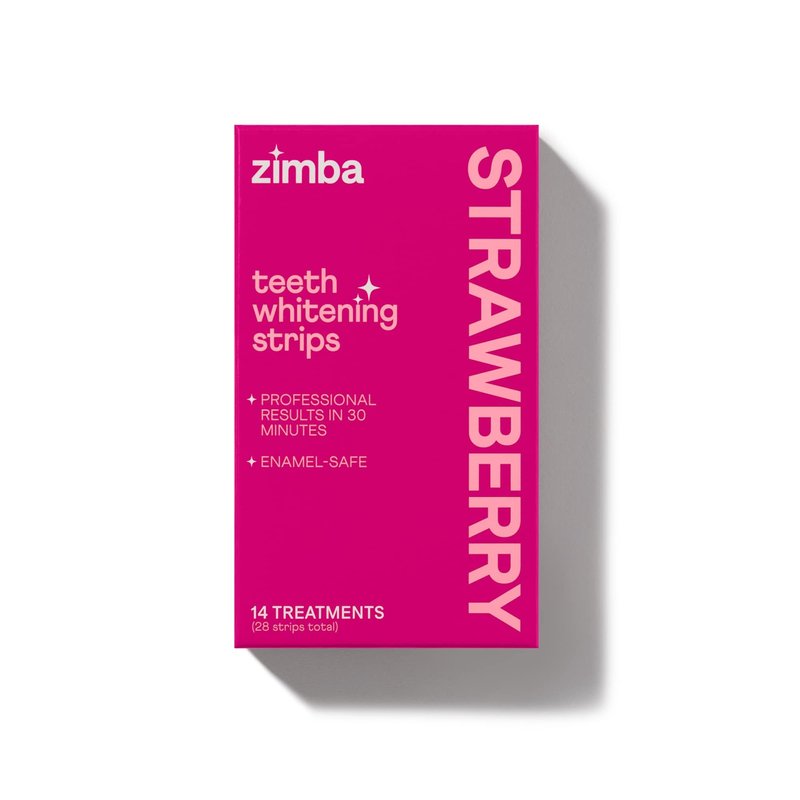 - Color: Zimba Strawberry Flavored Teeth Whitening Strips | Vegan, Enamel Safe Hydrogen Peroxide Teeth Whitener for Coffee, Wine, Tobacco, and Other Stains | 14 Day Treatment | Strawberry