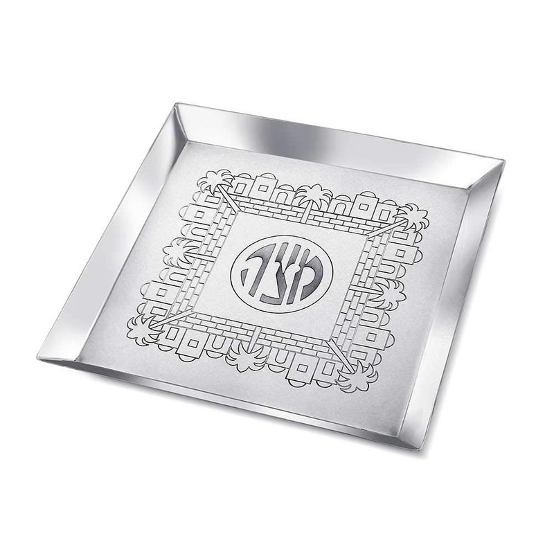 - This Matza Plate features Traditional beauty with the utmost simplicity. Laser Engraved with a Jerusalem old City Design pattern.