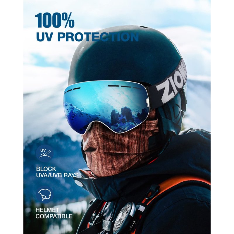 ZIONOR X Ski Snowboard Snow Goggles OTG Design for Men Women Adult with Spherical Detachable Lens UV Protection Anti-fog (VLT 22% White Frame Revo Blue Lens)