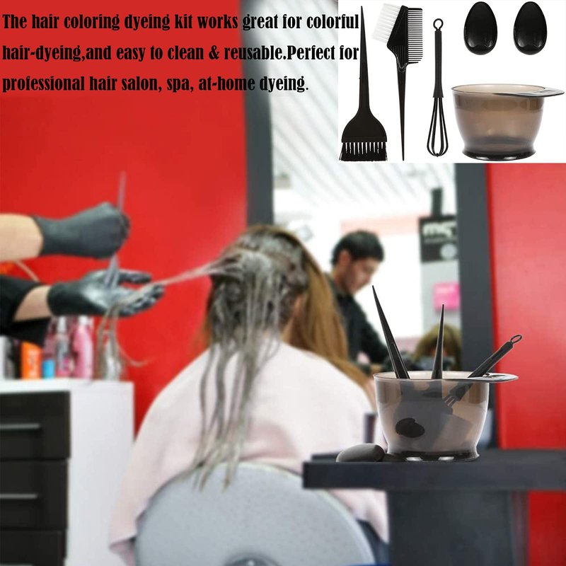 ZIOYCKL DIY Salon Dye Hair Tool Kit, 6Pcs Hair Dye Brush/Bowl Set, Professional Salon Hair Coloring Dyeing Kit - Mixing Bowl, Angled Comb and Brush (Pink)