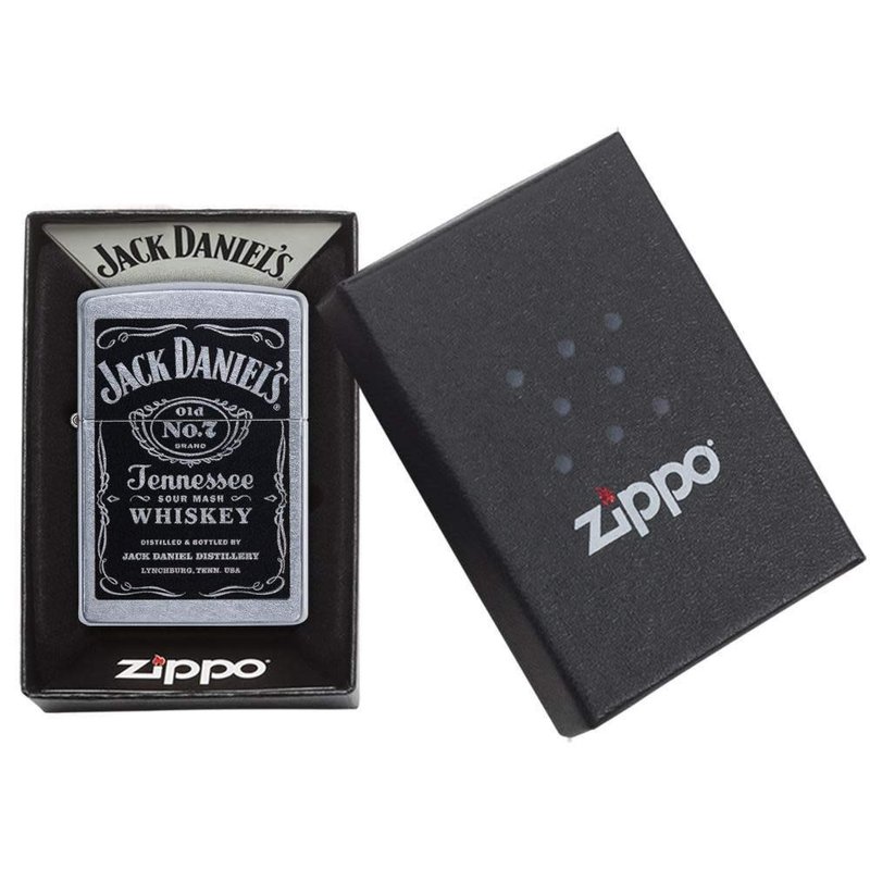Zippo Jack Daniel's Tennessee Whiskey Label Street Chrome Pocket Lighter, 5 1/2 x 3 1/2 cm