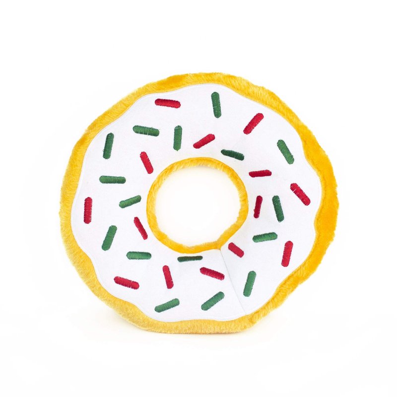 ZippyPaws Jumbo Donutz Christmas Dog Toy - Plush Squeaky Holiday Dog Gifts for Small & Medium Puppy Dogs, Interactive Hide & Seek Stocking Stuffers for Pets - Peppermint