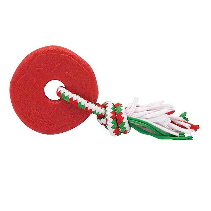ZippyPaws ZippyTuff Teethers Christmas Dog Toy - Plush Squeaky Holiday Dog Gifts for Small & Medium Puppy Dogs, Interactive Hide & Seek Stocking Stuffers for Pets - Holiday Red Donut