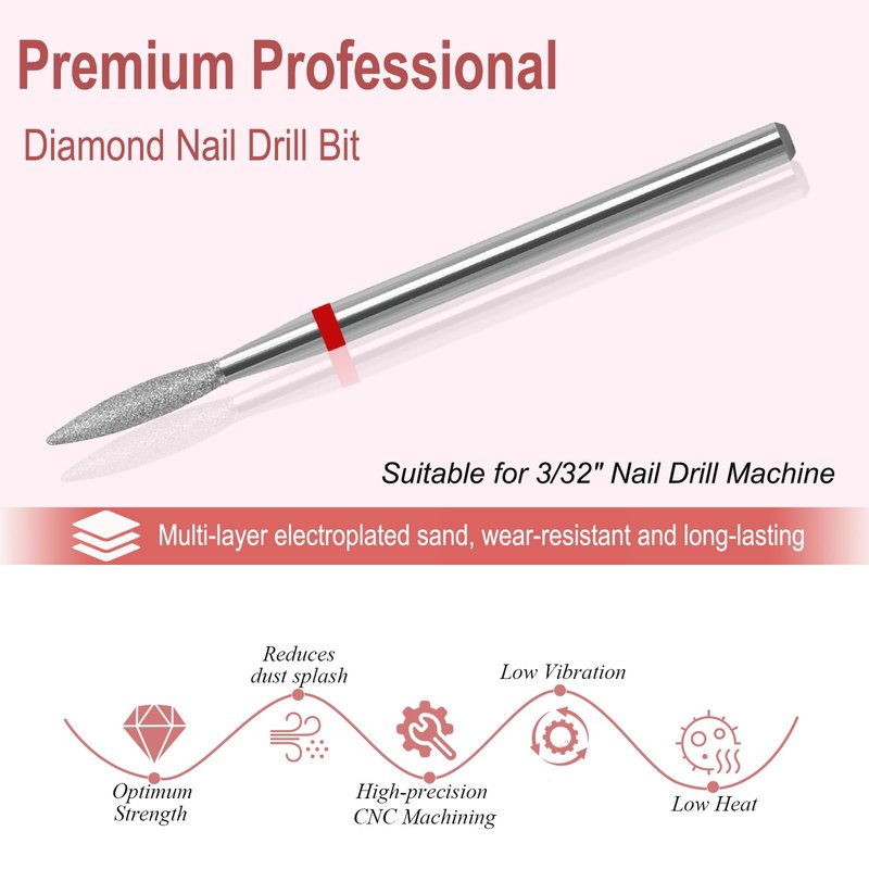 ZIRATONES Diamond Nail Drill Bit, Nail Drill Bits Pro Diamond Cuticle Bits for Nails Nail Buffer Bit Nail Trimer, Under Nail Cleaner Cuticle Remover Nail Prepare, Nail Supplies for Nail Techs(Fine)