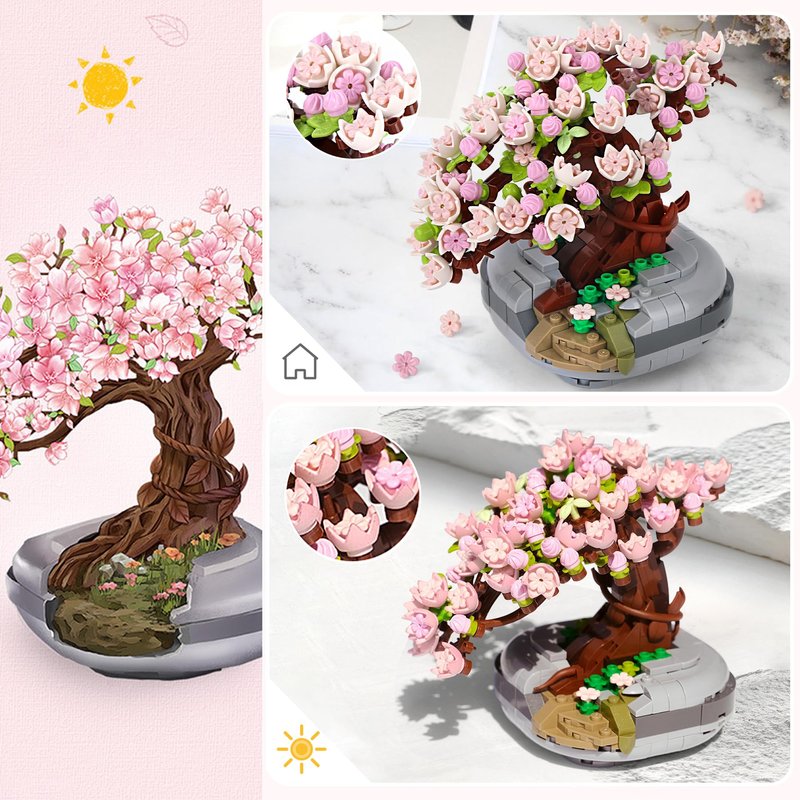 - 🌸【Unique building block】 The cherry tree flowers use Photosensitivity parts, which can change from white to pink in the sun. It shows the scene of pink cherry blossoms in different periods. You can take it to the sun and observe its beauty from all angles.