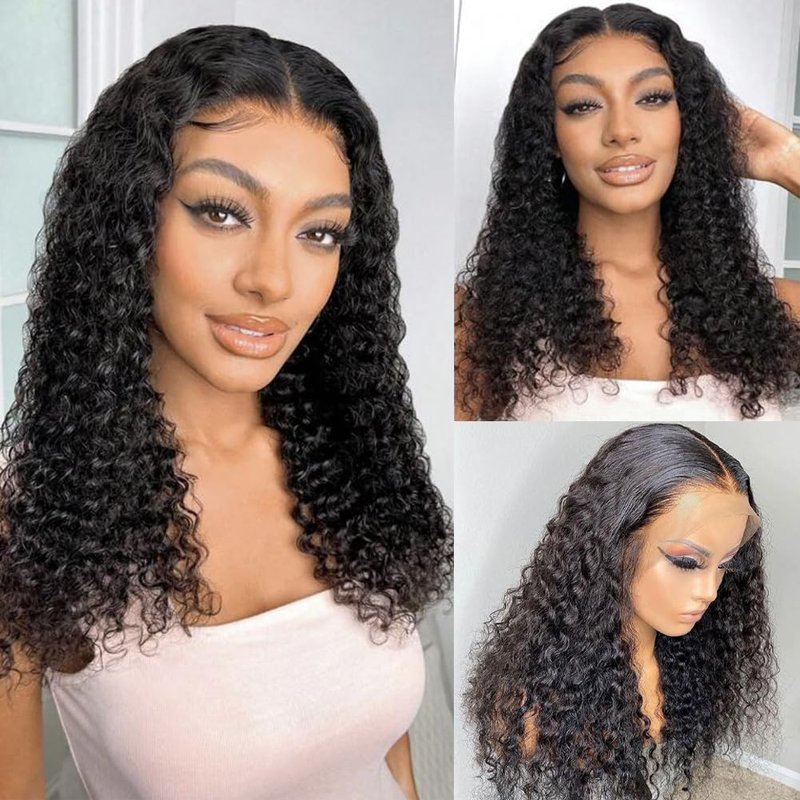 Deep curly wave wigs for women 100% human hair wig,16 inch-26 inch,true to length. Glueless design average wig cap one size for all with adjustable hook straps,Circumference is 22.5 inch, 4 combs Totally, 2 adjustable straps:easy to Adjust the size of the wigs cap, bandages and 3 comb clips at side and back help you secure your human hair wigs,it is so friendly to beginners.  You can feel free to take this frontal wig away without affecting the normal using of this no glue wigs again and again.