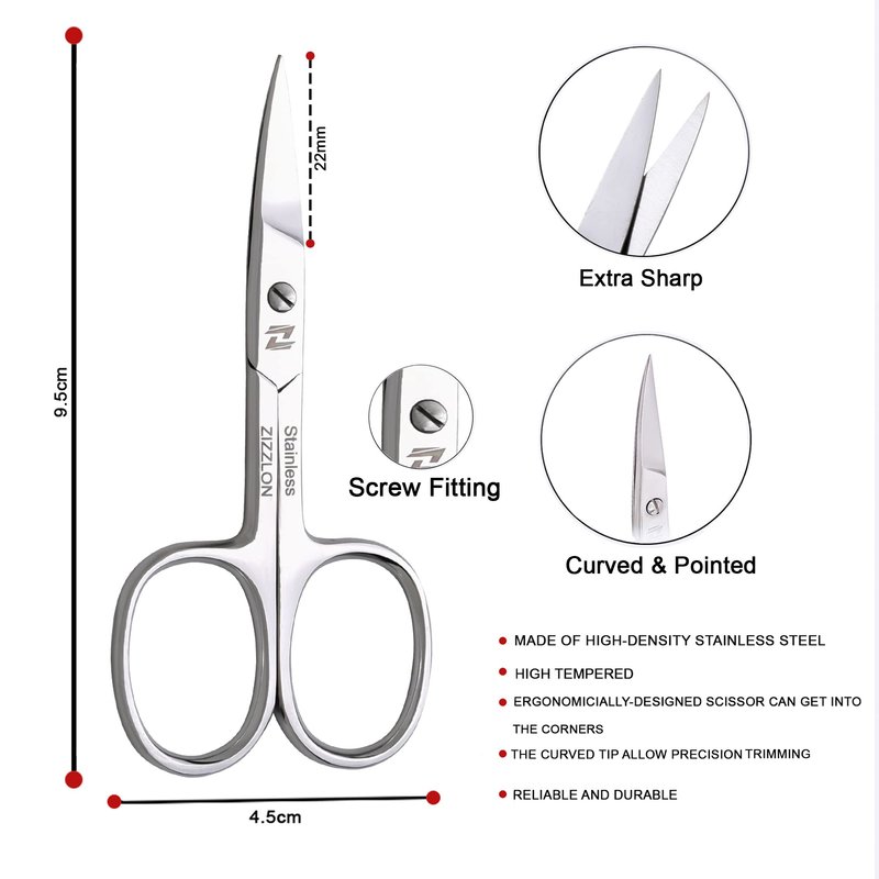 - Multipurpose Beauty Tool: Can be used as Eyebrow Scissors, Hair Scissors, Mustache Scissors, Eyebrow Trimmer, Nail Cutter, Cuticle Trimmer, Fingernail Clipper, Nose hair Trimmer for Men, Eyebrow Scissors for Women, Toenail Clippers.