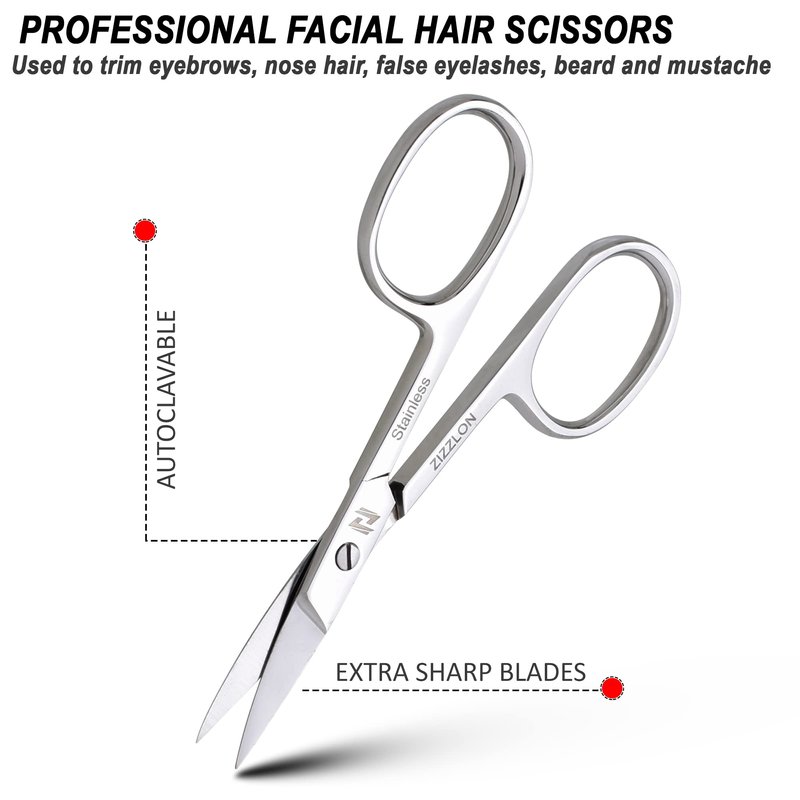 ZIZZLON Eyebrow Scissors for Women - Facial Hair Small Grooming Scissors for Men and Women – Professional Stainless Steel Scissors for Eyebrows, Nose Hair, Mustache, Beard, Eyelash, Dry Skin