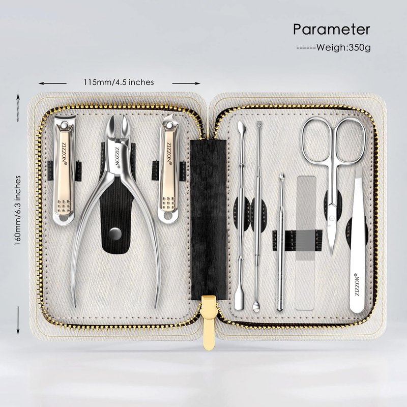 ZIZZON Manicure Set Professional Stainless Steel Toenail and Fingernail Clippers Set 9 in1 Pedicure and Grooming kit with Travel Case (Black)