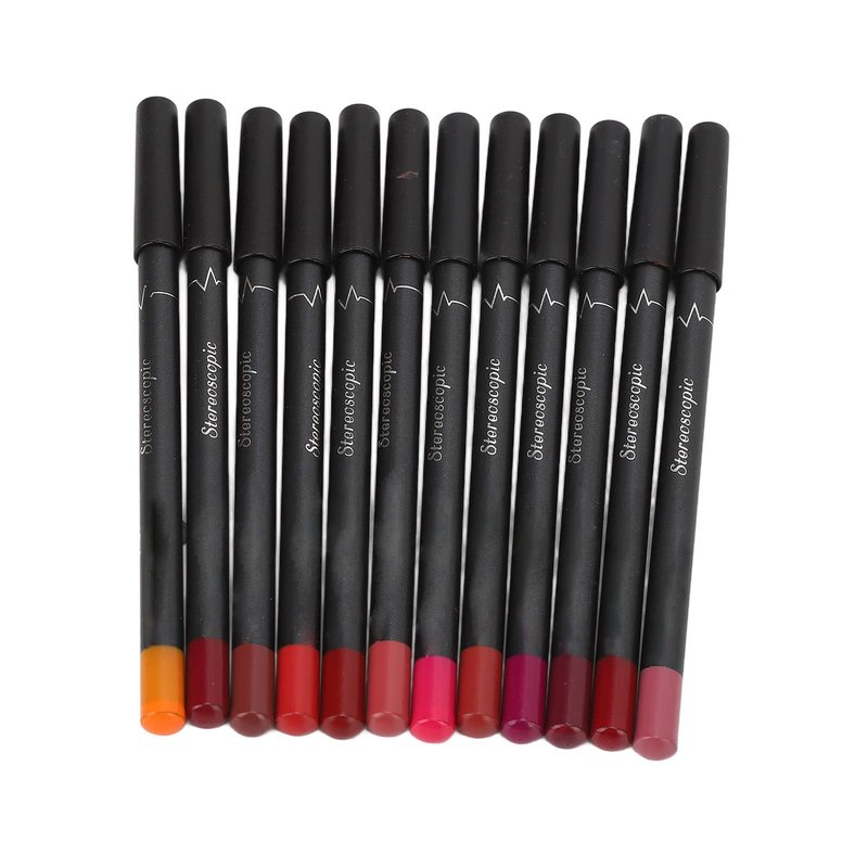 ZJchao 12Pcs Lip Liner, Contour Pencil for Girl Women, Waterproof Smooth Soft Smudge Matte Long Lasting Lipstick Makeup Tool Set