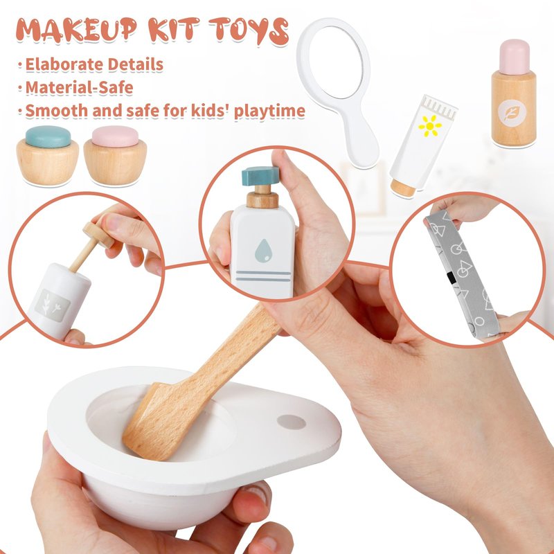 - Premium Wooden Pretend Play Set: This makeup toy set are made of natural solid wood, durable and smooth, non-toxic, BPA-free and odor-free, we don't have to worry about our child getting hurt while playing.