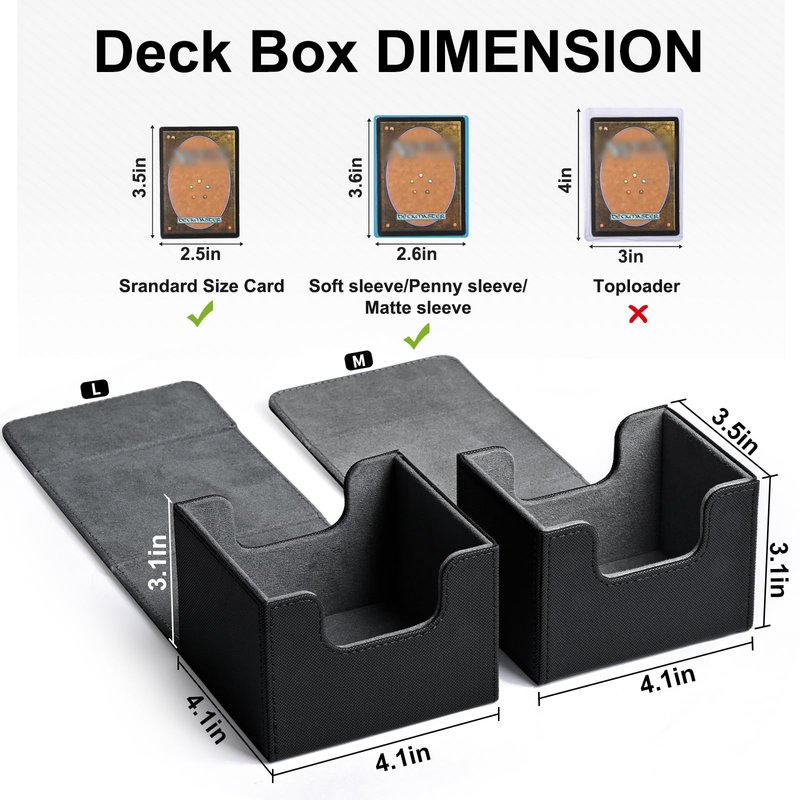 - High Capacity: Compared with the traditional plastic card box, the durable leather card deck box gets an upgrade, and offers more room for your cards; it can hold up to 100+ double-sleeved cards, 120+ single-sleeved cards, or 220+ sleeveless cards
