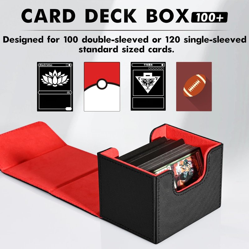 - High Capacity: Compared with the traditional plastic card box, the durable leather card deck box gets an upgrade, and offers more room for your cards; it can hold up to 100+ double-sleeved cards, 120+ single-sleeved cards, or 220+ sleeveless cards