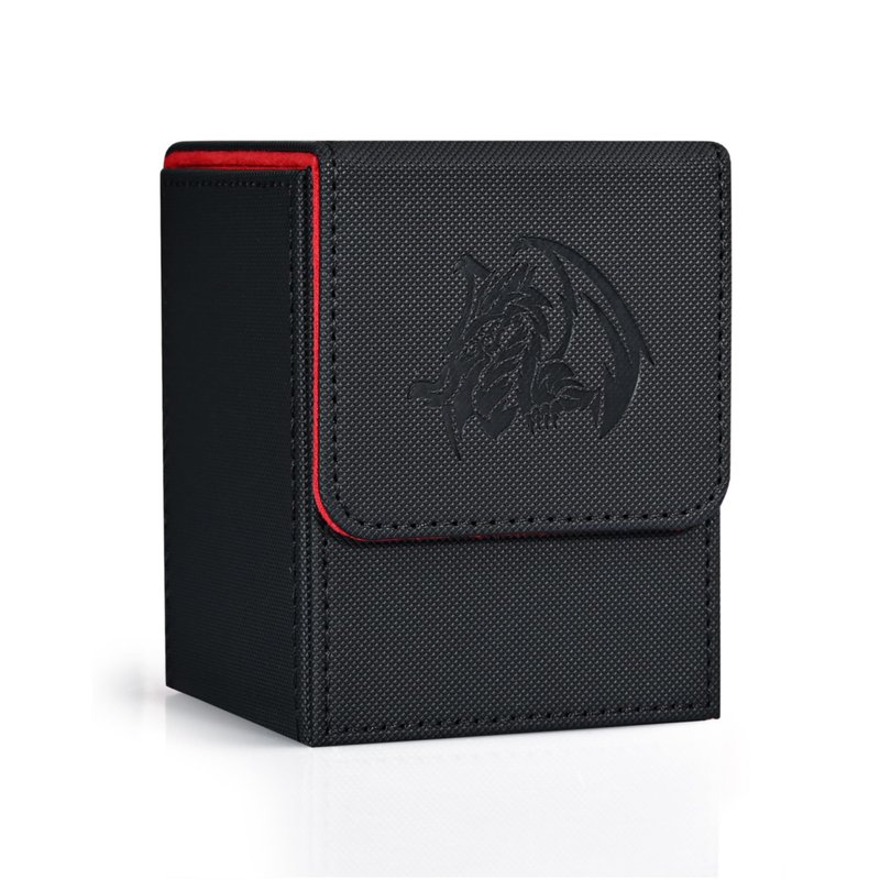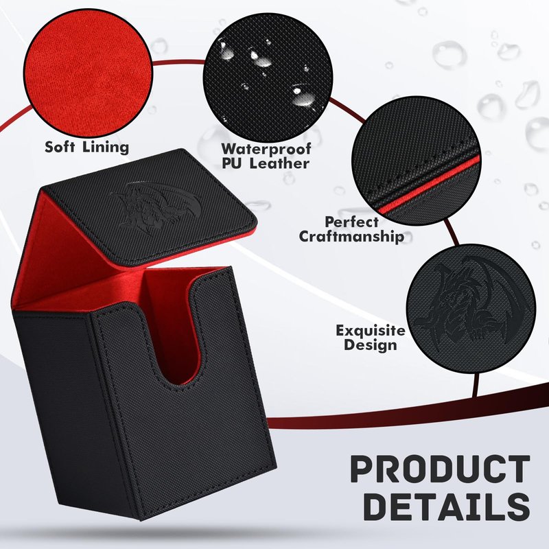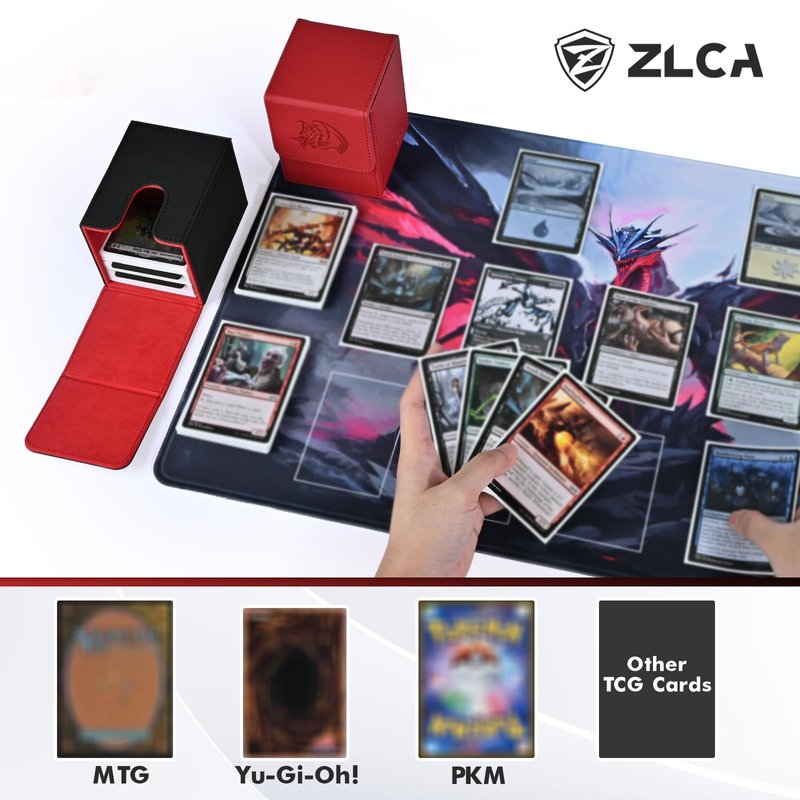 ZLCA Card Deck Box for Trading Cards with 2 Dividers, Card Storage Box Fits 100+ Single Sleeved Cards, PU Leather Card Deck Case Holder for Magic Commander TCG CCG ๏ผBlack&Red,Emperor Dragon๏ผ