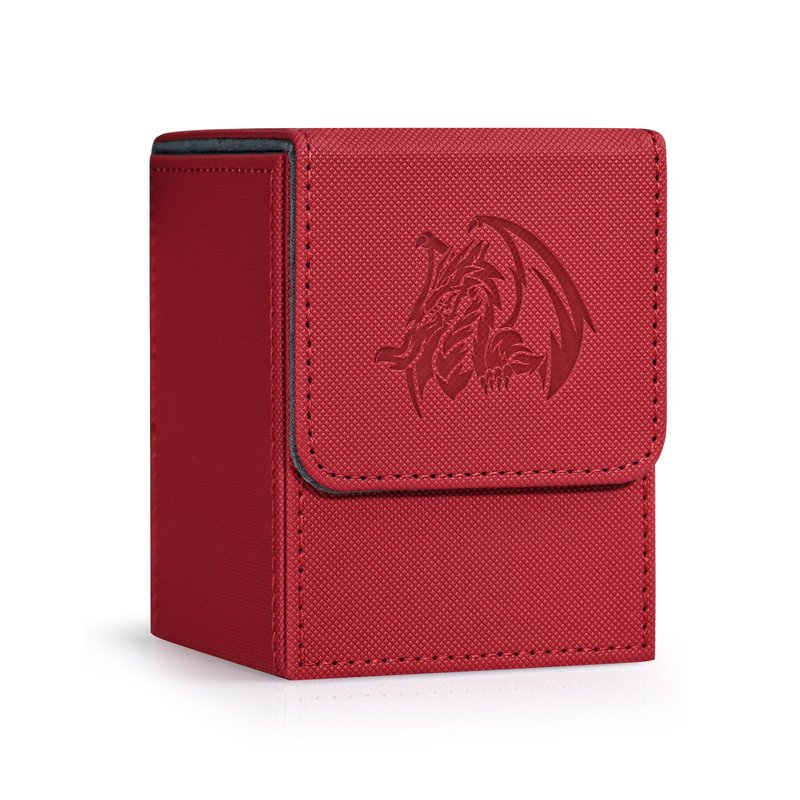 ZLCA Card Deck Box for Trading Cards with 2 Dividers, Card Storage Box Fits 100+ Single Sleeved Cards, PU Leather Strong Magnet Card Deck Case Holder for Magic Commander TCG CCG οΌRed,Emperor DragonοΌ