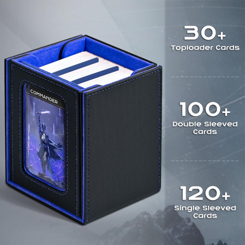 ZLCA MTG Deck Box with Commander Window Display, Trading Card Storage Box Holds 100 Double-Sleeved Cards Suitable for TCG/CCG/PTCG/EDH/Magic/Sport Cards (Black&Blue)