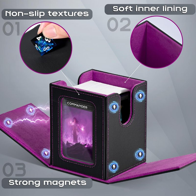 ZLCA MTG Deck Box with Commander Window Display, Trading Card Storage Box Holds 100 Double-Sleeved Cards Suitable for TCG/CCG/PTCG/EDH/Magic/Sport Cards (Black&Purple)