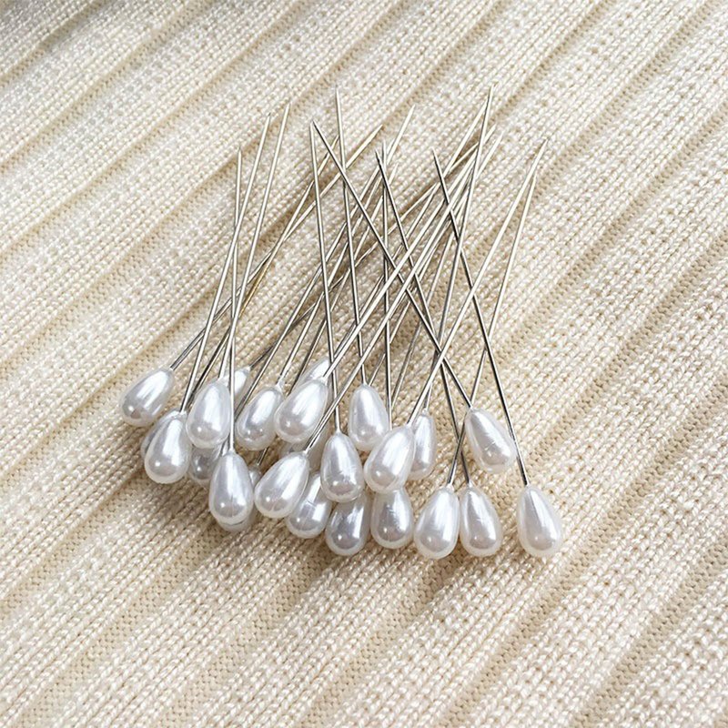 100 pieces hijab pins, long teardrop pearl head pins, boutonniere pins, buttonhole pins, can also be used for jewelry making sewing wedding floral decorations and DIY crafts.