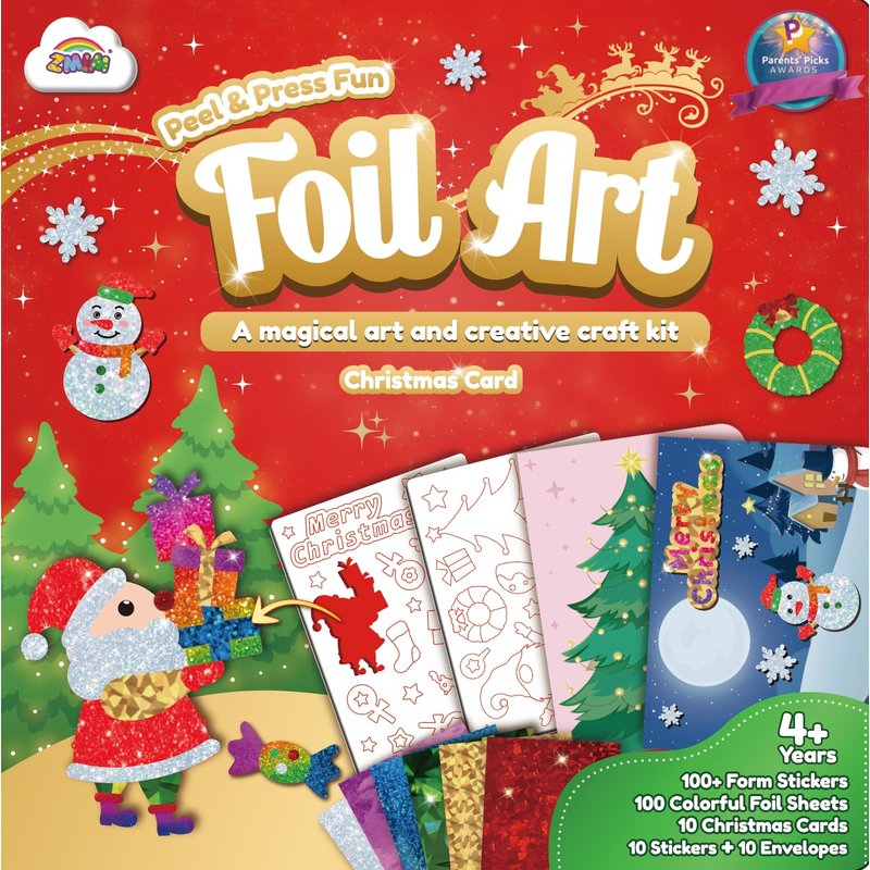 - Kids Christmas Crafts: Our foil art kits contain more than 100 foam stickers, 100 colorful foil sheets, 10 Christmas Cards , 10 Envelopes and 10 Stickers. let's make a unique Christmas card together